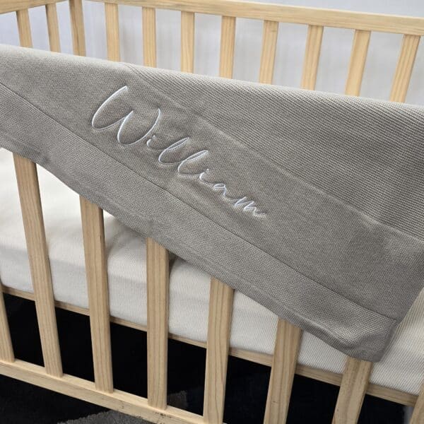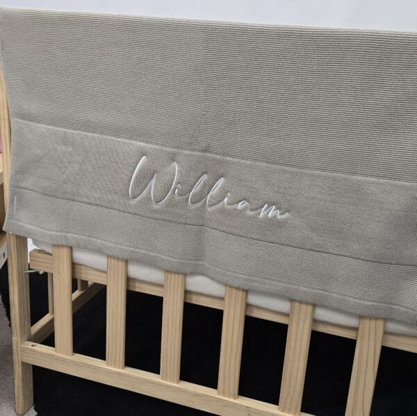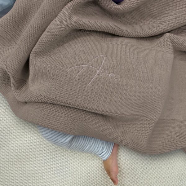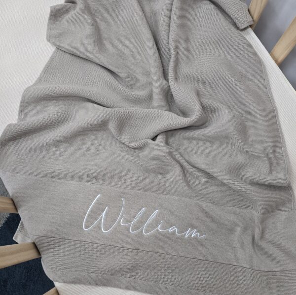 This Beige Single Colour Knitted Blanket comes with your custom name embroidered in either a white or beige thread.