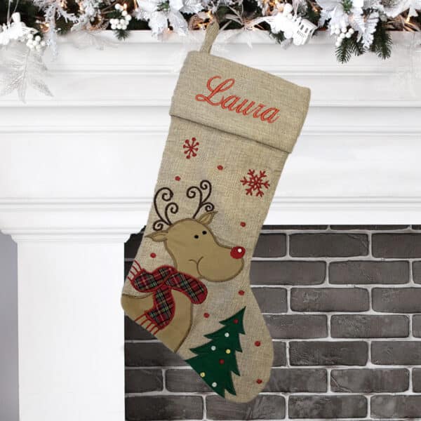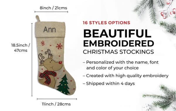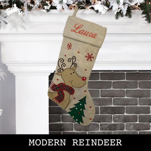 Our Modern Reindeer Stocking, expertly embroidered using quality materials, promises to endure as a cherished heirloom piece. Watch new generations discover the magic as this decorative highlight and gift holder becomes an annual tradition!