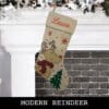 Enchant your home with festive holiday cheer with our Modern Reindeer Christmas Stocking! This adorable design features a cute reindeer wearing a plaid scarf, radiating traditional Christmas magic and bringing smiles with his cheerful charm.