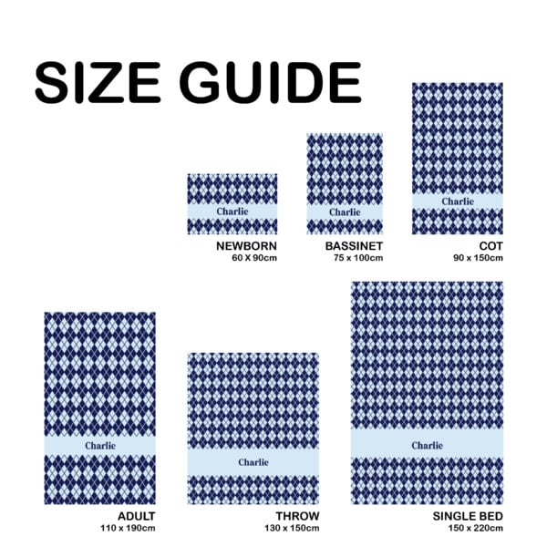 To begin customising your own Custom Argyle Blanket, simply choose your desired size from the drop-down menu and pick your favourite colours and font. Our user-friendly design process makes it easy to create a one-of-a-kind blanket that will be cherished for years to come.
